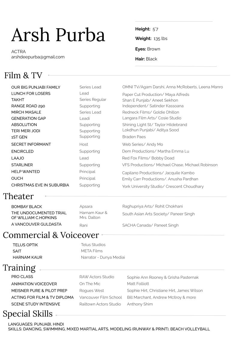 Welcome to my page of artistry! The page where the essence of being an artist takes center stage and celebrated with utmost significance! My name is Arsh Purba and I am an actress, model and dancer. You may recognize me as the leading lady on OMNI TV’s “Our Big Punjabi Family”. Or maybe on the big screen, for the notable Pollywood films! As an empath, I am constantly working on my craft and personal growth, so I am able to bring a unique perspective to my roles. Join me on this journey as I dive deeper into the world of storytelling!